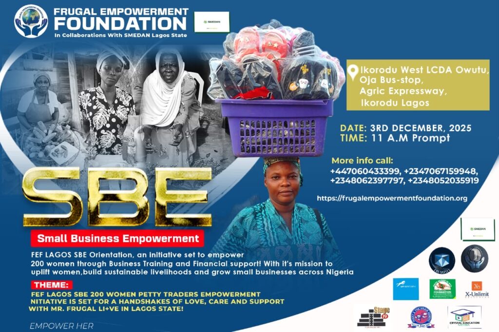 The Frugal Empowerment Foundation (FEF) Small Business Empowerment (SBE) Programme, a charitable initiative aimed at empowering women and young people in Nigeria through grants and training. This programme addresses critical barriers such as limited funding, business knowledge, and access to resources, helping aspiring entrepreneurs establish or expand their small businesses.